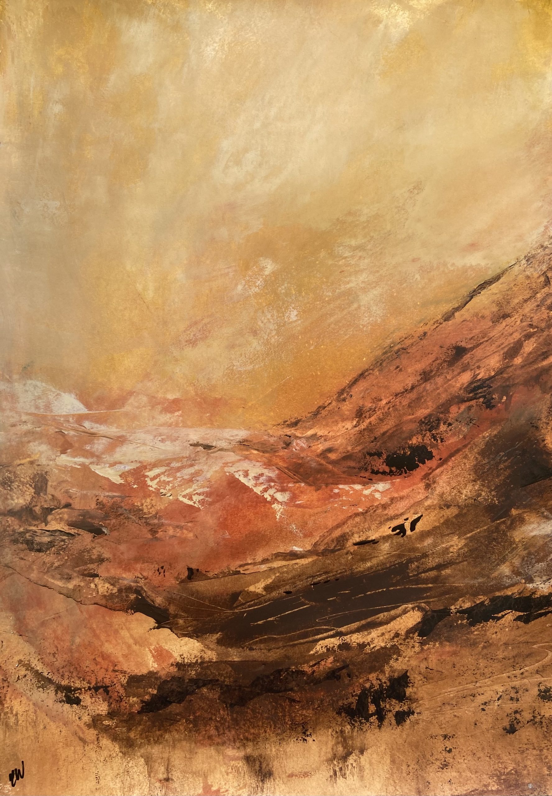 A beautiful abstract landscape painting. 59.4 x 42 cm (A2 size). Acrylic on paper. Frame not included. Requires framing.