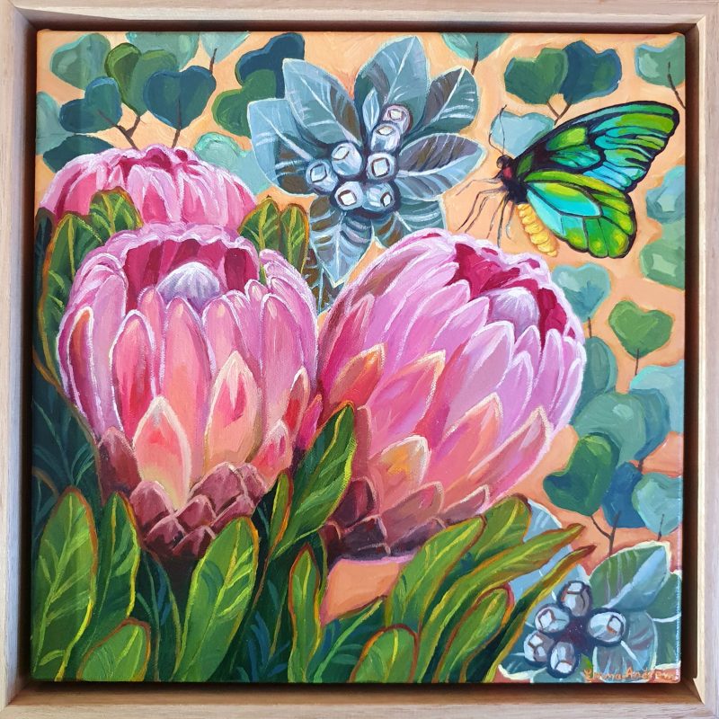 The Artwork comes Framed in Black and ready to hang, and it is mounted under a clear acrylic sheet.