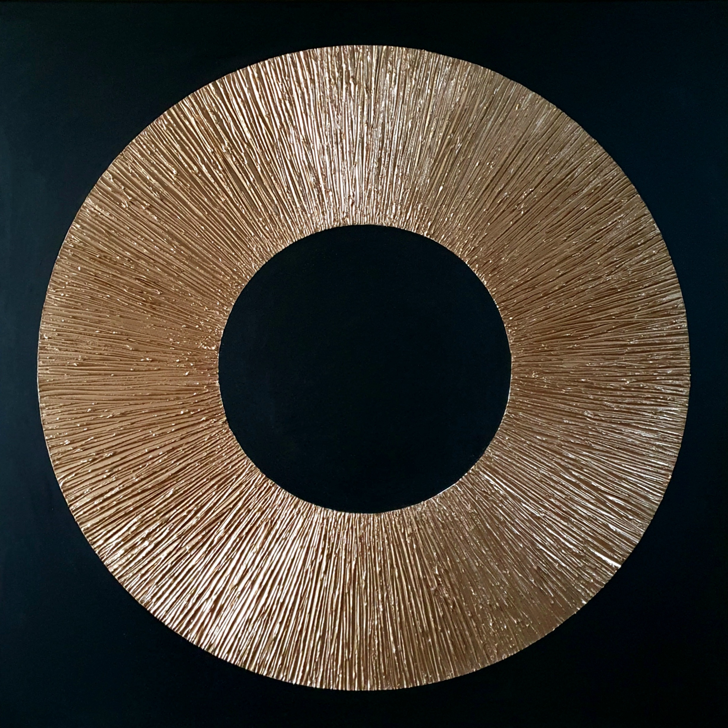This piece is made by layering modeling paste on canvas and spray painted with high quality metallic gold spray paint in 24k colour gold metalic finish . This create the unique 3D design.