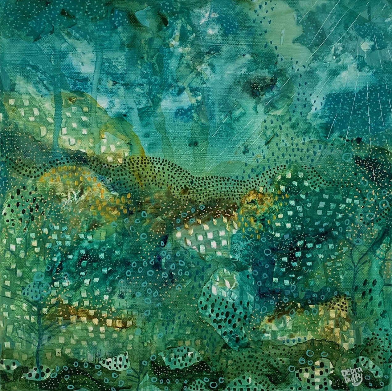 This artwork is an original abstract style landscape painting. I have used Acrylic paint and artist markers which I like to merge these mediums creating contrasting textures and patterns that weave together like a tapestry. For this delightful mini creation I wanted to use an intuitive approach by applying the acrylic paint in a very fluid and loose way letting each layer form gently and then used patterns and to shape forms withing the landscape.