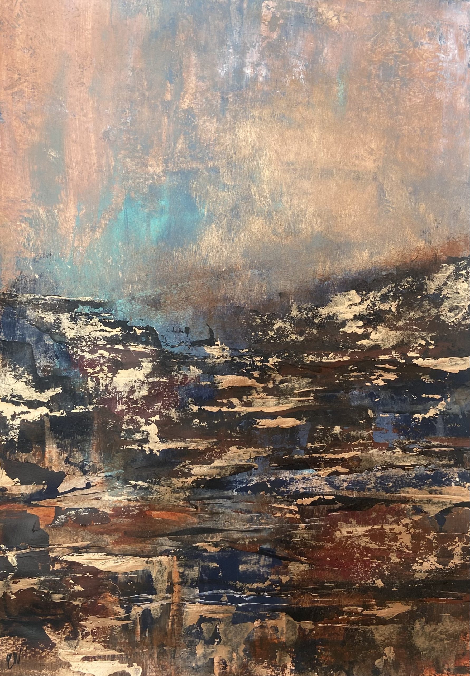 A beautiful abstract landscape painting. 59.4 x 42 cm (A2 size). Acrylic on paper. Frame not included. Requires framing.