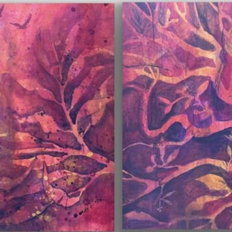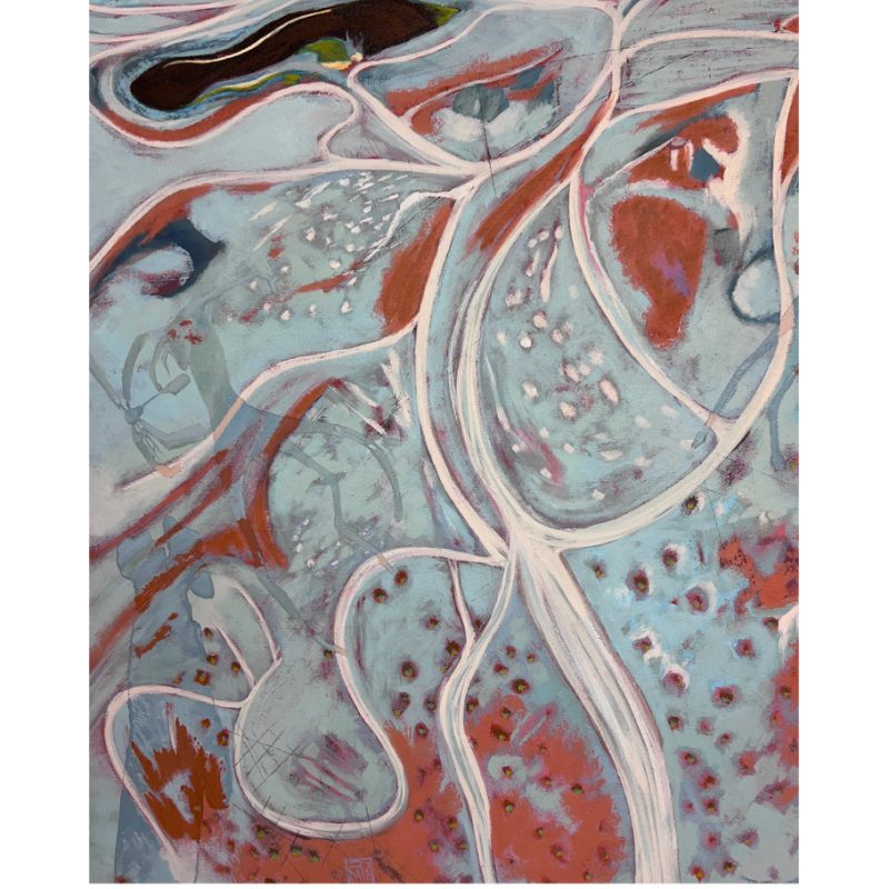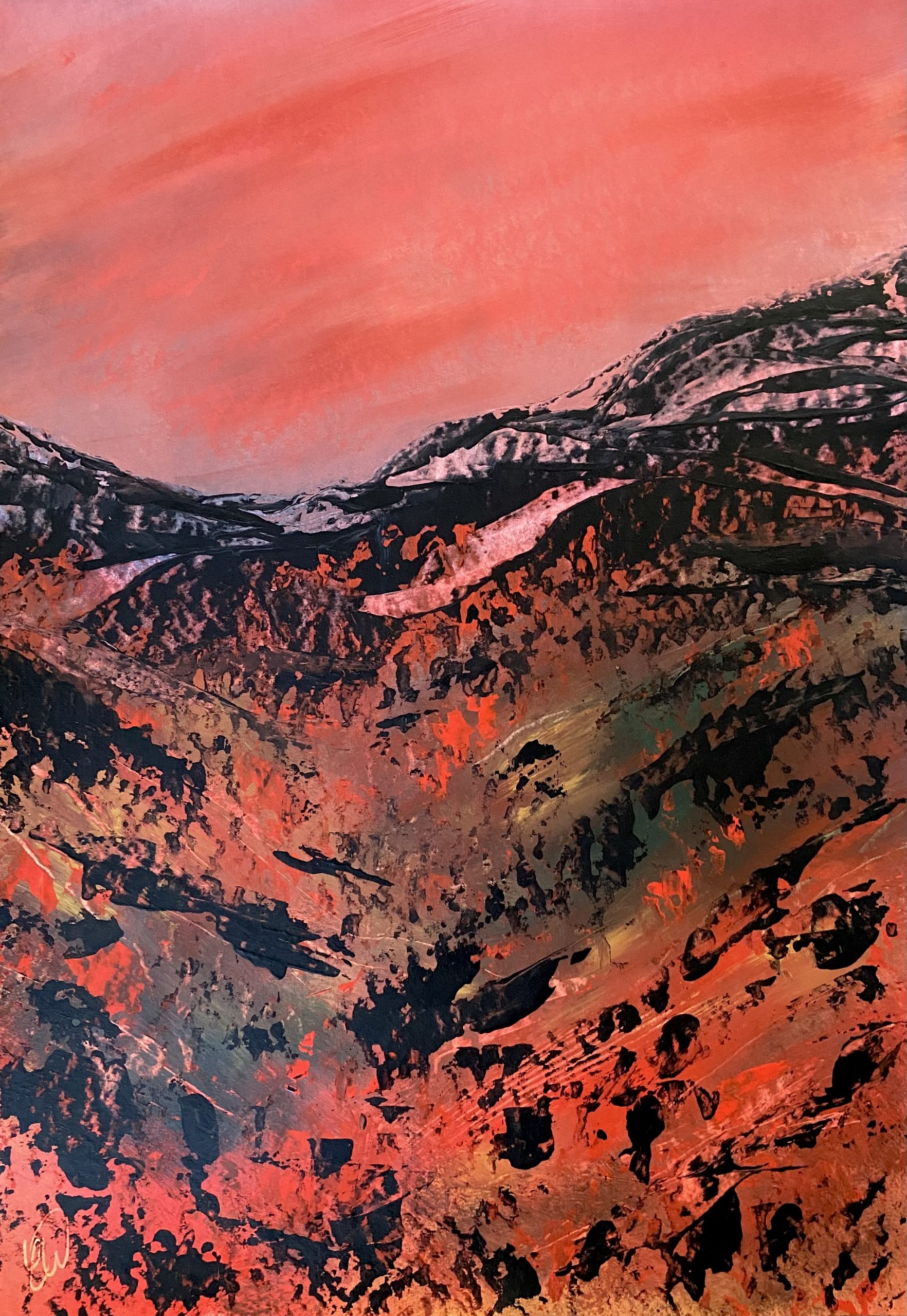 A beautiful abstract landscape full of texture and sunset warmth. Some images show what this piece looks like framed. Frames not included. 59.4 x 42 cm (A2 size) Acrylic on paper. Requires framing.