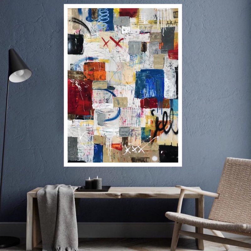 Original artwork – an eye-catching extra large multi-directional abstract acrylic painting stretched and ready to hang.