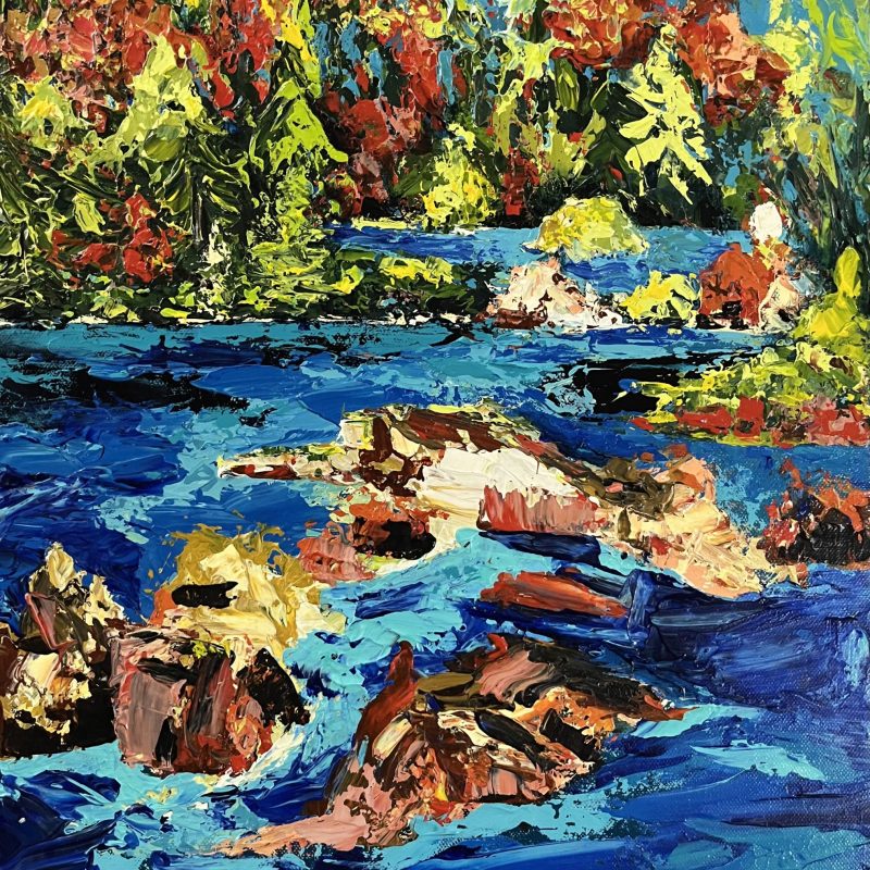 This artwork has been finished with layers of professional grade high gloss varnish for extra protection, colour enhancement and a beautiful smooth finish. The metallic paint used reflects the shifting light beautifully really bringing the painting to life.