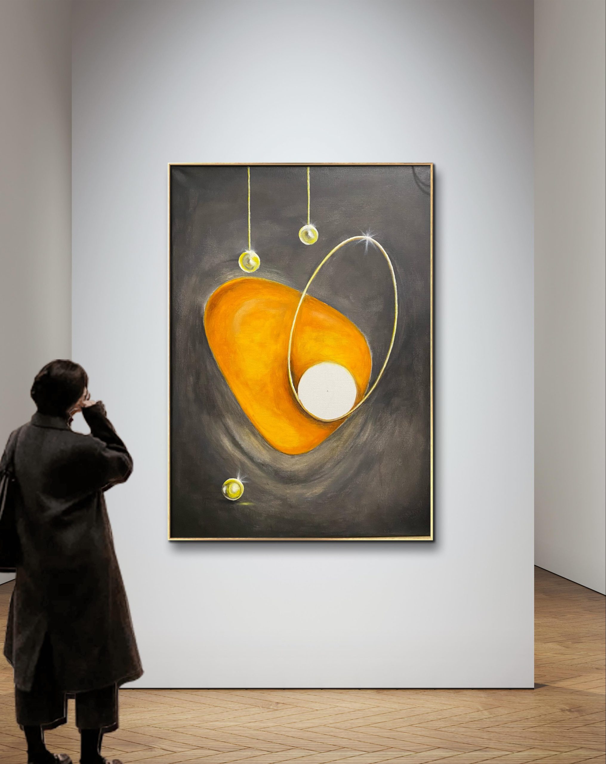 Golden rings by Mahesh Aluthge – Modern contemporarty abstract art with different shapes and blends of colors. Would suit in a hallway or a dining room.