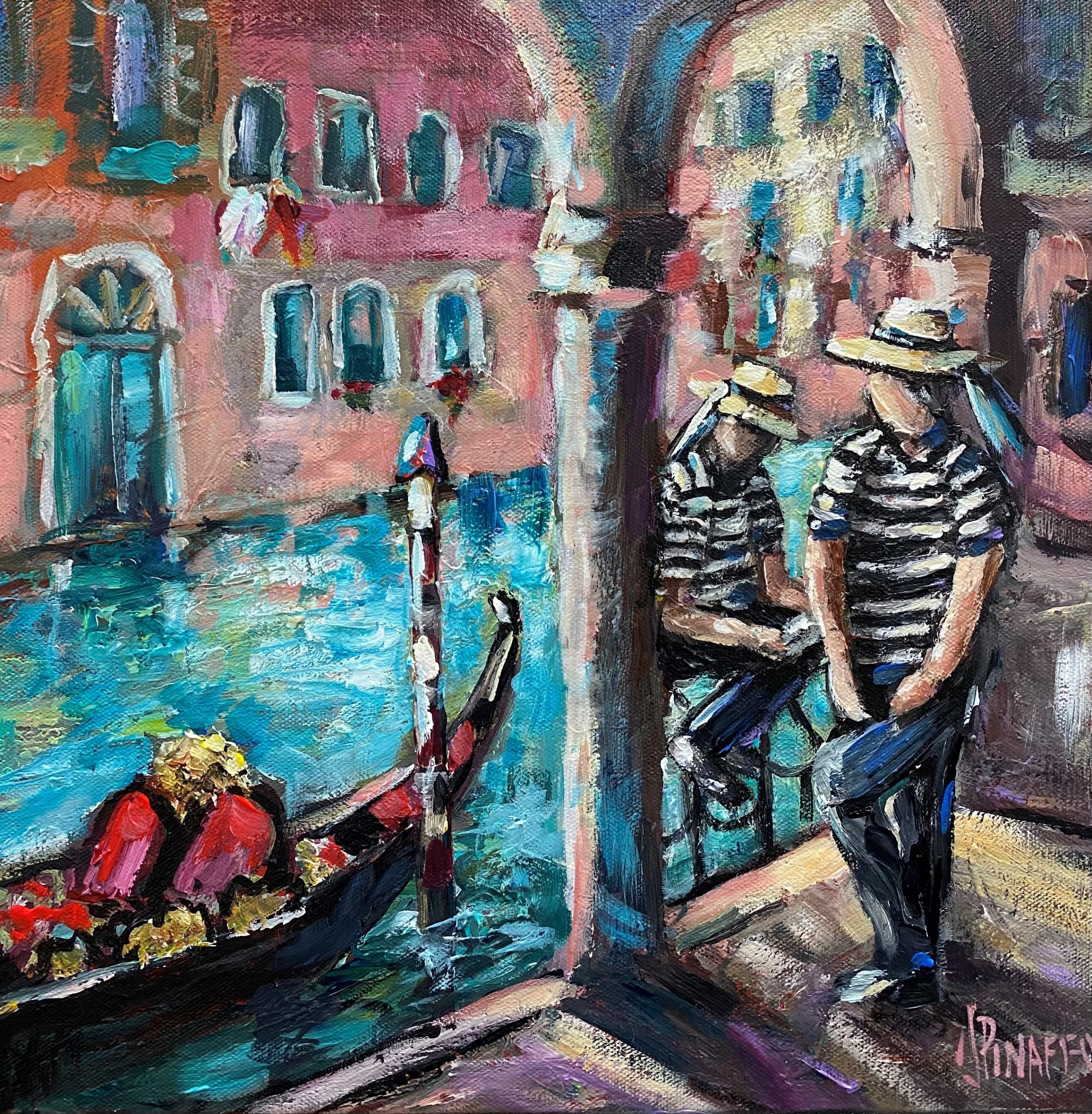 Gondoliers waiting for work in Venice by Ivana Pinaffo