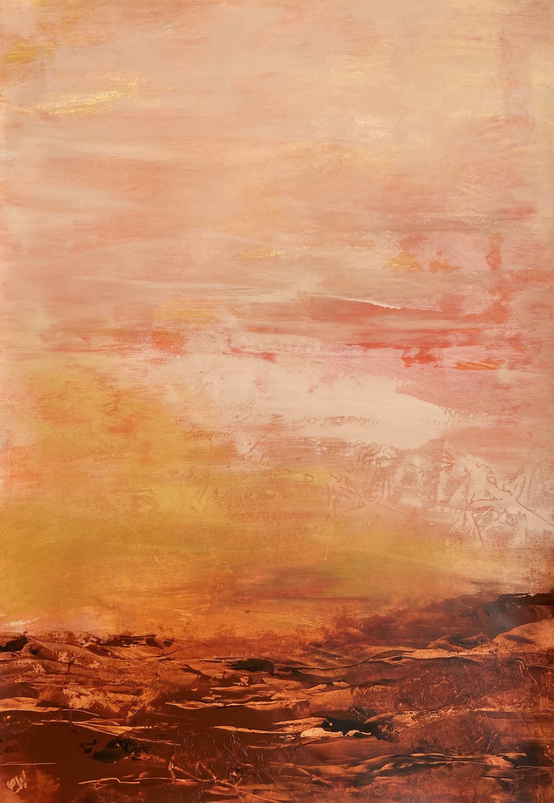 A beautiful abstract landscape painting. 59.4 x 42 cm (A2 size). Acrylic on paper. Frame not included. Requires framing.