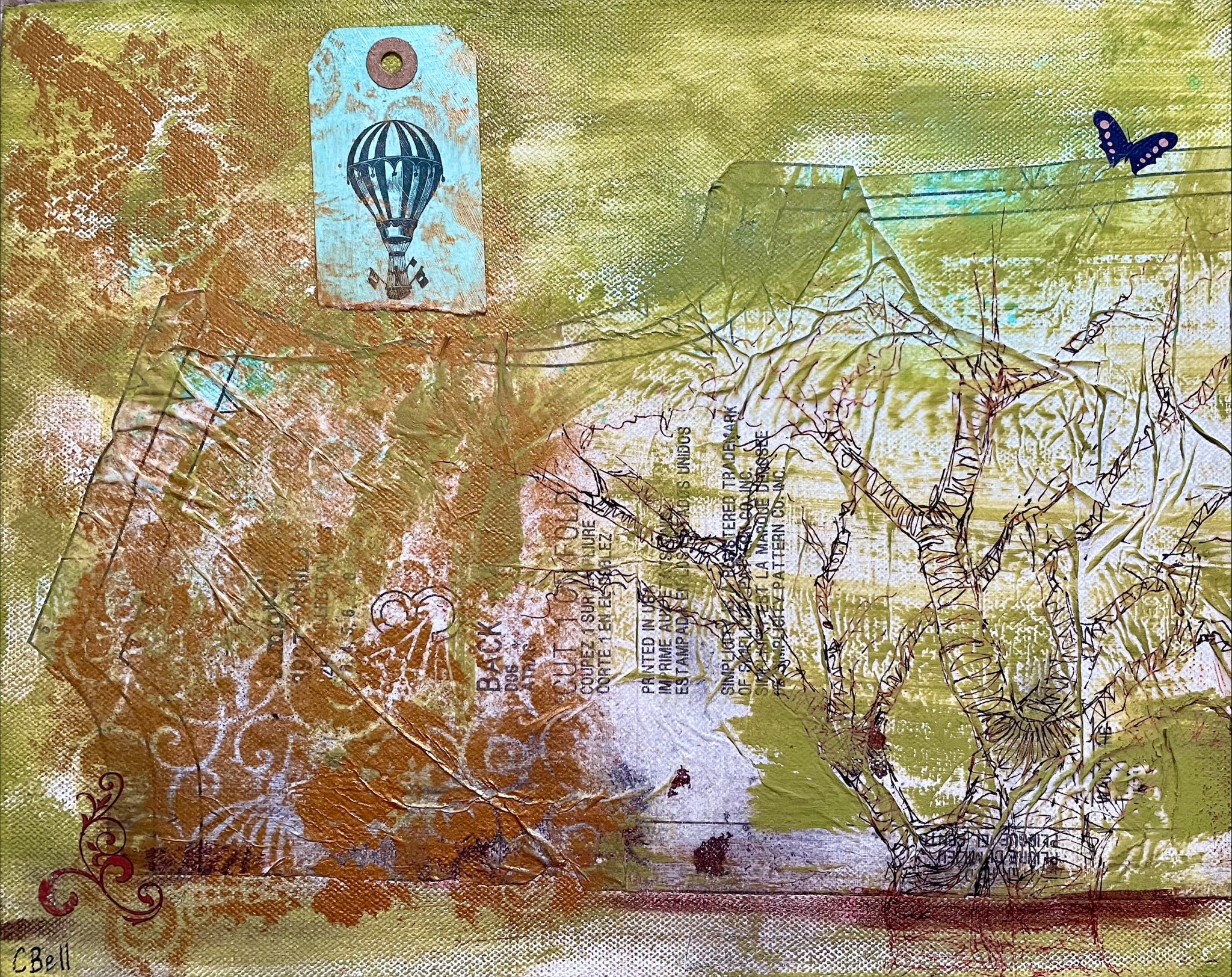 A unique mixed media work, capturing the feeling of reflecting on good times and happy moments.