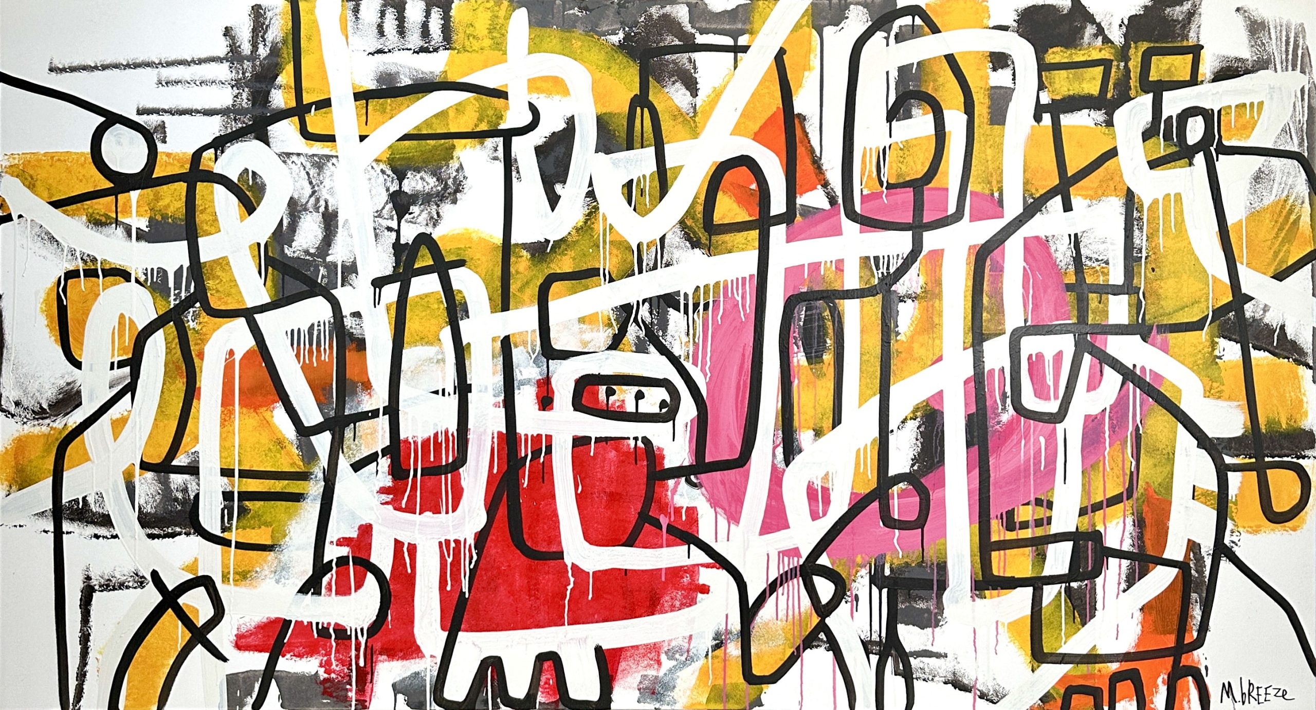Original artwork using acrylic paints applied with trowel, hands and brush on to stretched canvas