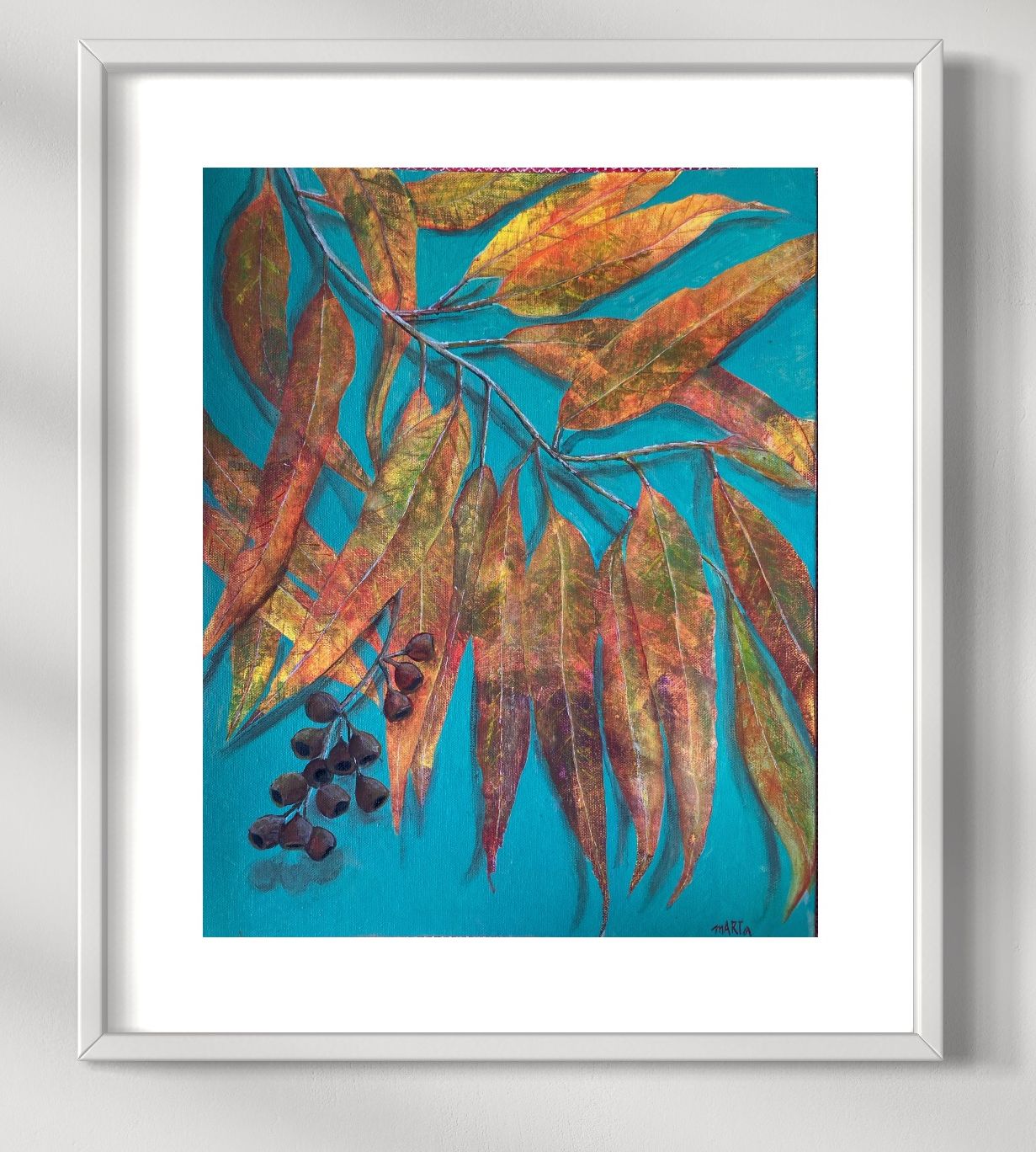 PLEASE NOTE that colours may differ from original painting on monitor screens, mobile devices, and tablets. Artwork displayed in rooms are for the purpose of demonstration only and not always to the exact scale. Please check dimensions for actual size. Frames with mat shown in the display are a suggestion only as the painting is unframed.