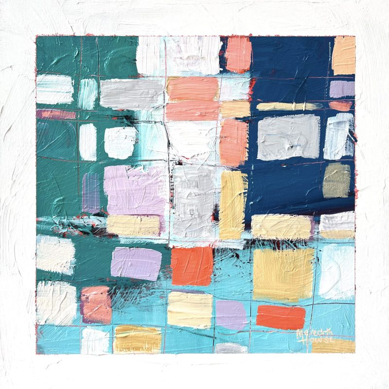 The work created on Recycled Street Directories and built up with layers of paint to create a textured surface. The artwork was then framed in a black poster frame and mounted under clearing perspex sheet for protection, the framed work is ready to hang.