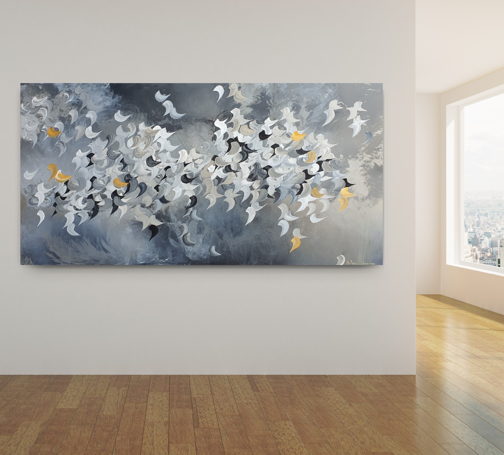 I view painting as sheer passion and feeling. Through my process I don’t seek to depict a set idea or subject, but instead I let scenes and dynamic movement emerge organically.