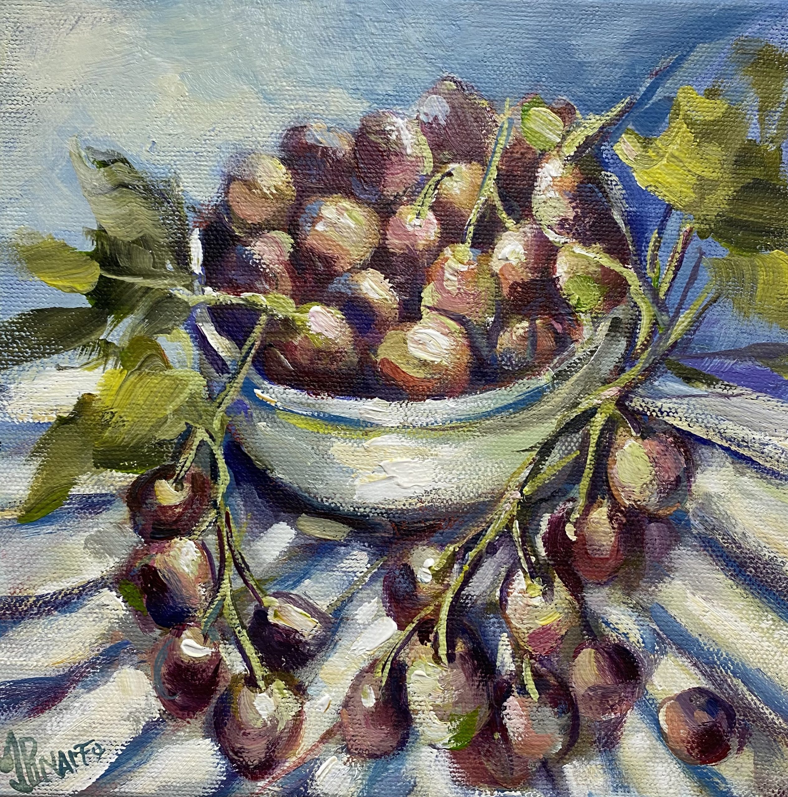 Few grapes placed in a bowl were the inspiration for this paint.