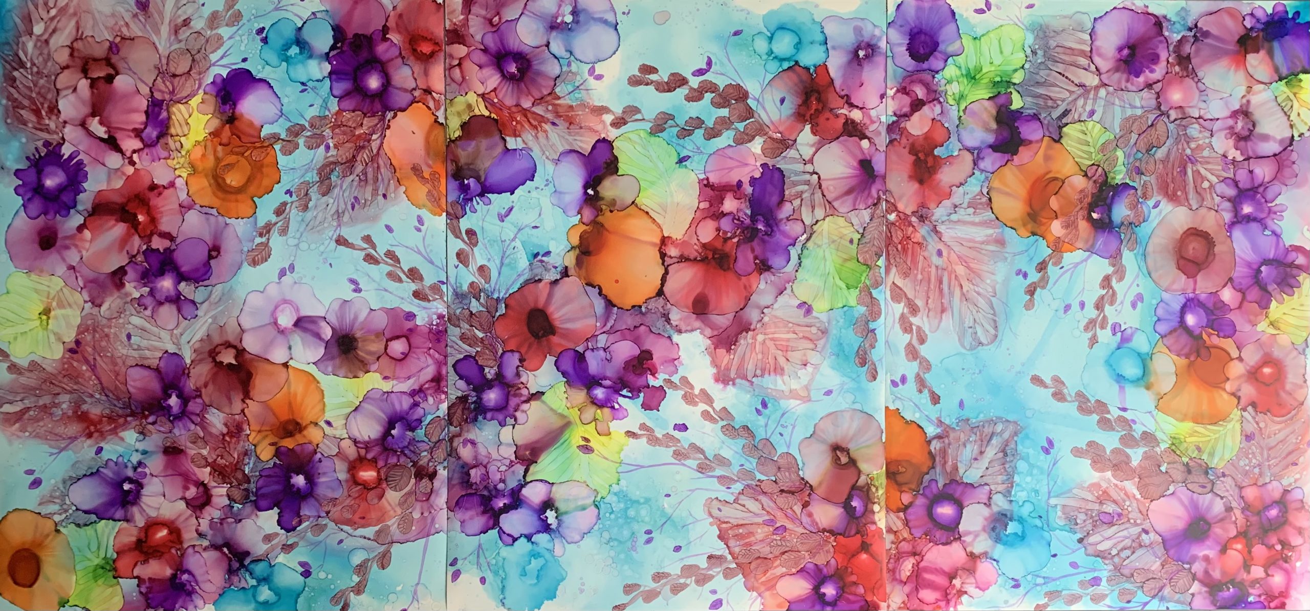 Original triptych 65 cm x 91 cm x 3 Alcohol ink on yupo paper sealed with high grade varnish and UV spray.