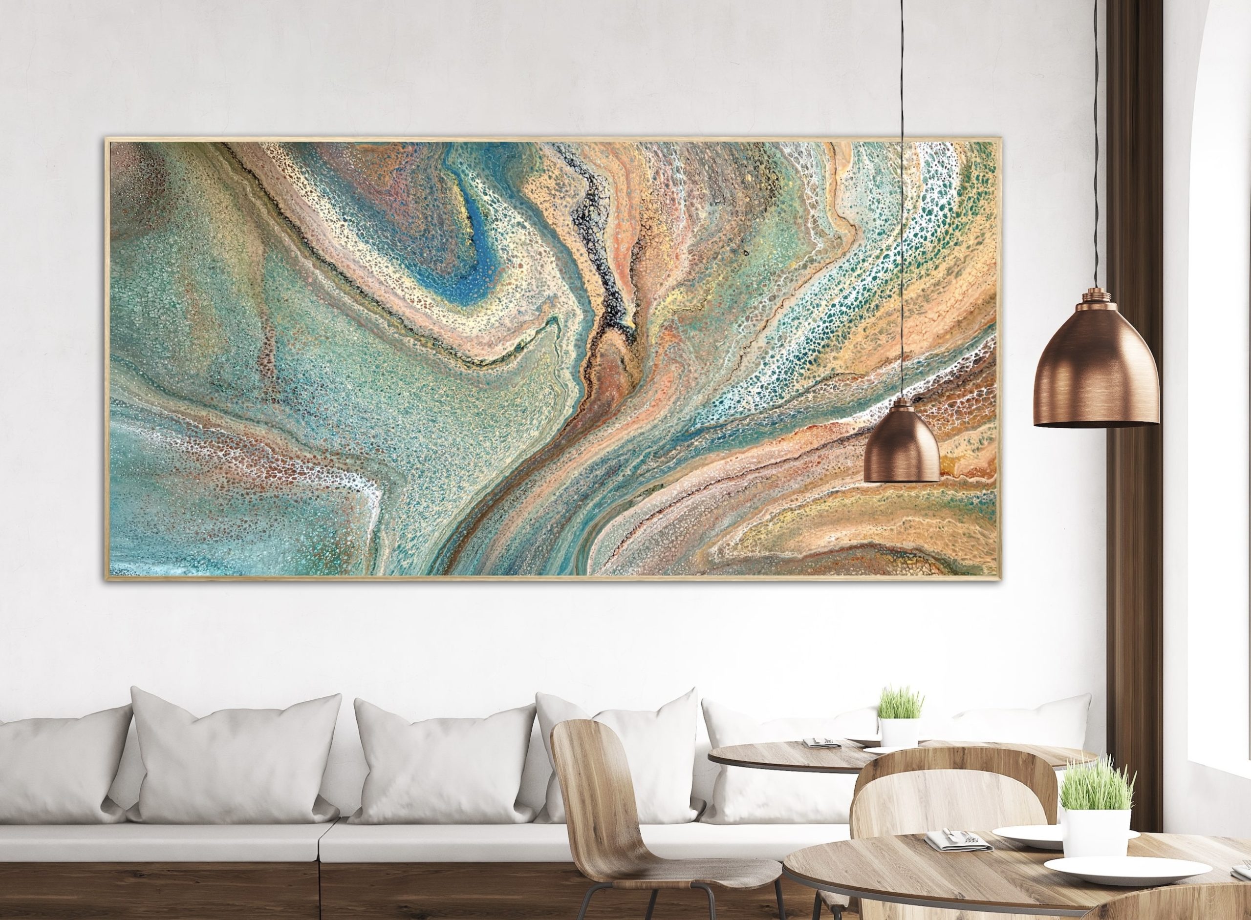 ‘In situ’ photos have been included to help with visualisation of the artwork in your home. In situ photos provided were created using the ArtStage app and may not be perfectly to scale. This being said, every effort has been made to represent the size of the art accurately but please read the dimensions of the artwork to ensure it fits your space perfectly. Where provided, photos of framed art are for illustrative purposes only.