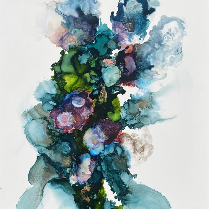 The artist’s layered brushwork and restrained palette emphasise softness and texture, allowing fabric, wood, and greenery to merge harmoniously. Light moves subtly across the chair and walls, suggesting stillness rather than activity, and inviting the viewer to linger.