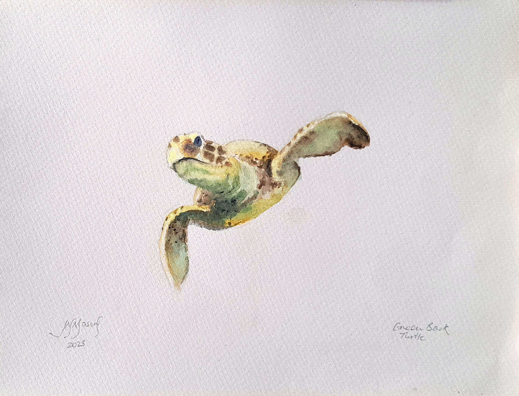 Green back Sea Turtle as seen on the Great Barrier Reef Australia. A study painting for underwater paintings.