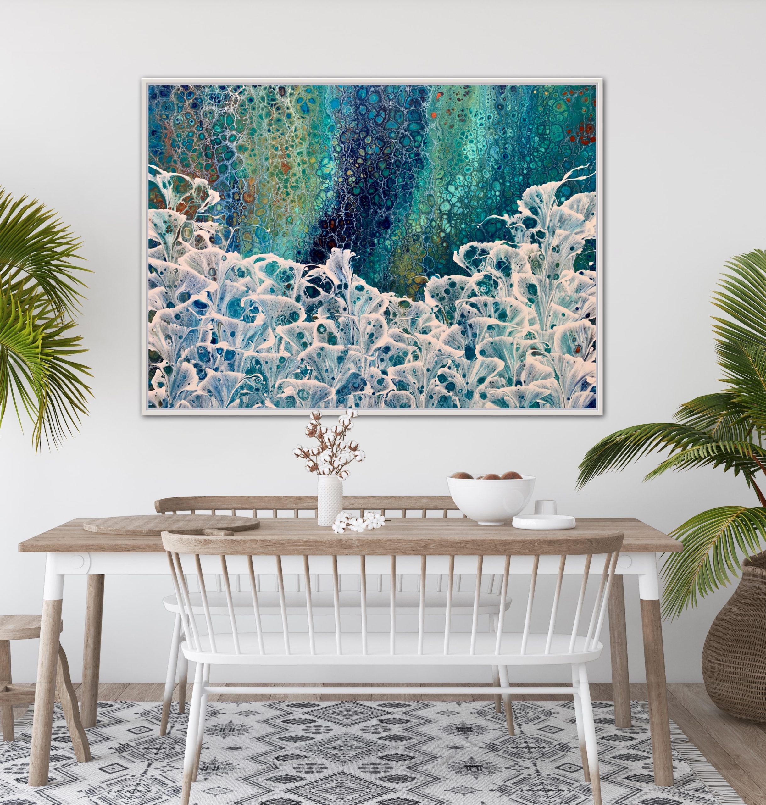 ‘In situ’ photos have been included to help with visualisation of the artwork in your home. In situ photos provided were created using the ArtStage app and may not be perfectly to scale. This being said, every effort has been made to represent the size of the art accurately but please read the dimensions of the artwork to ensure it fits your space perfectly. Where provided, photos of framed art are for illustrative purposes only.