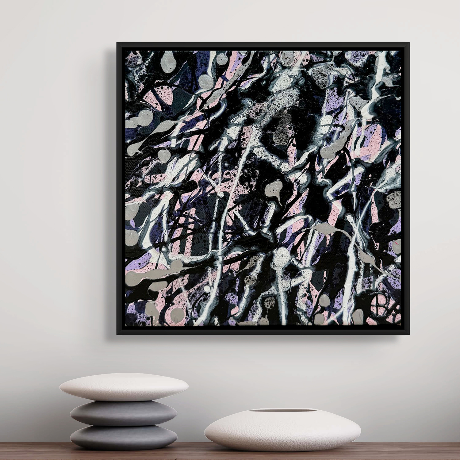 This modern, mini abstract draws the eye to complex patterns and layers, packed with texture, even more luscious and tactile in person. The abstract is painted to the edges so no need for an external frame. Prefer a frame? I suggest a black float frame as this will give this modern abstract a chic style.