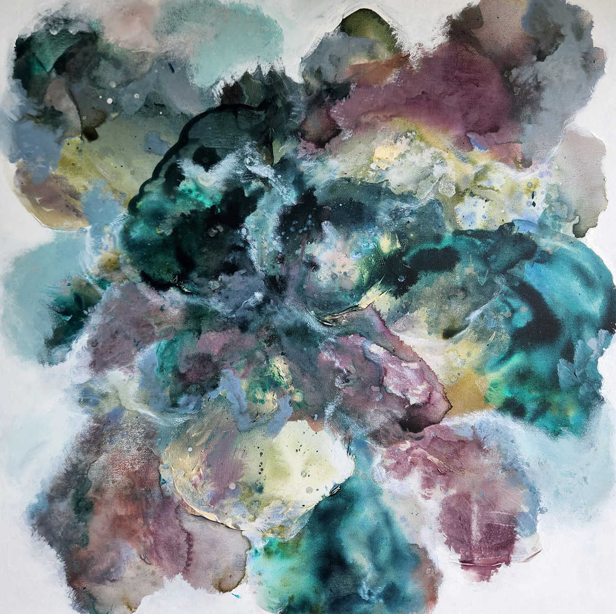 Adorned with pure 24 karat gold leaf, metallic gold paints, dusty pinks and blues with sprinkles of texture, this original artwork absolutely glows off the wall, making a luxe statement and filling you with memories of flowers.