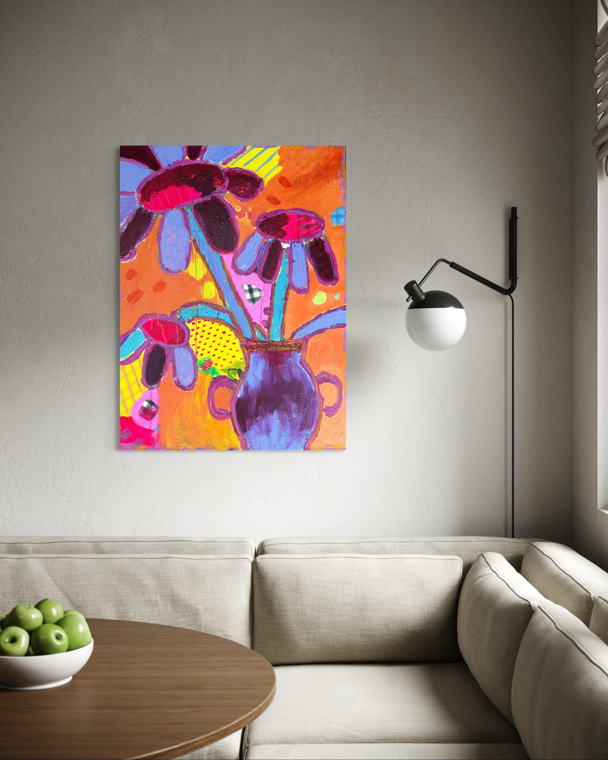This artwork celebrates the gentle magic that happens when we support one another. Bold blooms lean and stretch toward the light, sharing colour, warmth and energy. Each flower stands on its own, yet their beauty is amplified by being side by side.