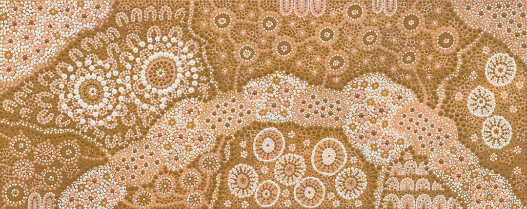This artwork was created to showcase indigenous Australia’s sacred sites. Places that are deemed significant and meaningful to our aboriginal people based on their beliefs. It features a beautiful landscape of rich earth, vegetation and abundance.
