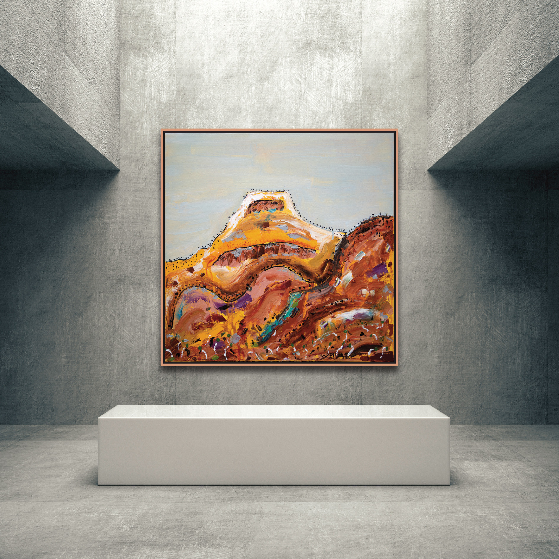 This beautiful contemporary abstract painting draws inspiration from the landscape along the Larapinta Trail in the West MacDonnell Ranges NT.