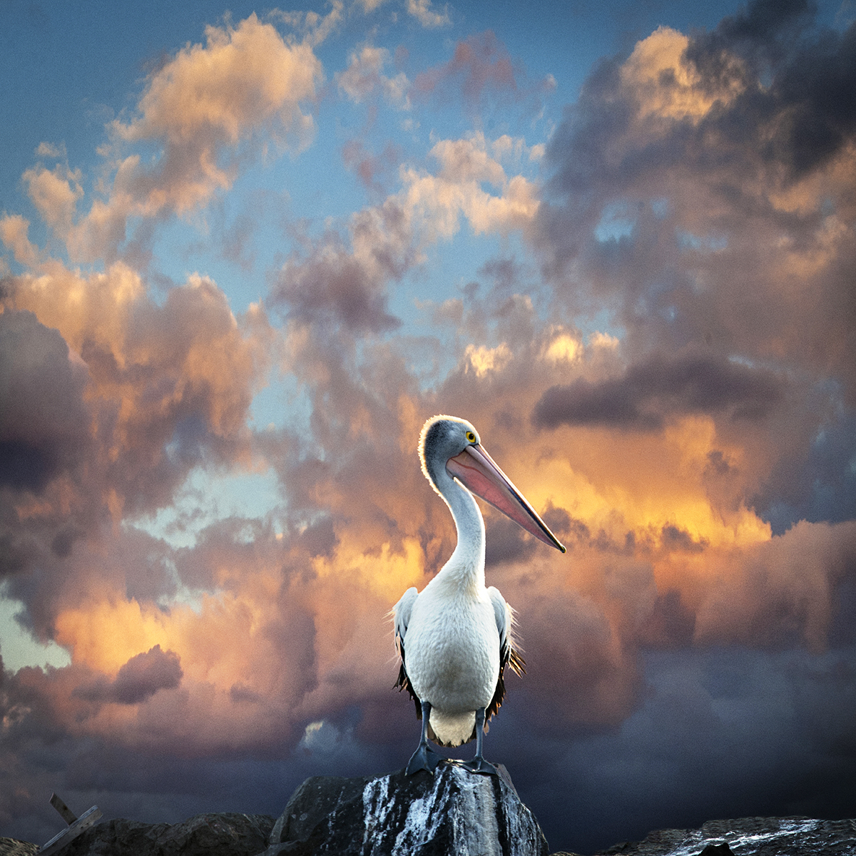 Halo – This pelican posed for me at sunset at the Mambo wetlands in Port Stephens. I love the sunset colours shining through the translucent beak and the halo effect around the head. To me they are graceful creatures, particularly when swimming, they seem to glide with perfect balance. I also love to see them flying, they can soar thousands of feet in the air, hovering on the warm currents. The pelican’s aboriginal name is nerimba.