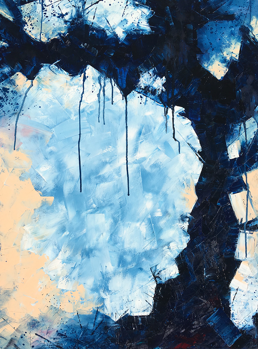 What started out as a random abstract image ended up becoming a macabre, haunted dead tree. As I usually do, I just let the painting evolve on its own until I see something happening. In this case I saw visions of the classic old Clint Eastwood movie “Hang Em High”, with drips of paint, rather than drips of blood. The bright, cheery, pastel colours however contrast with the spooky scene to make it pleasing to the eye.