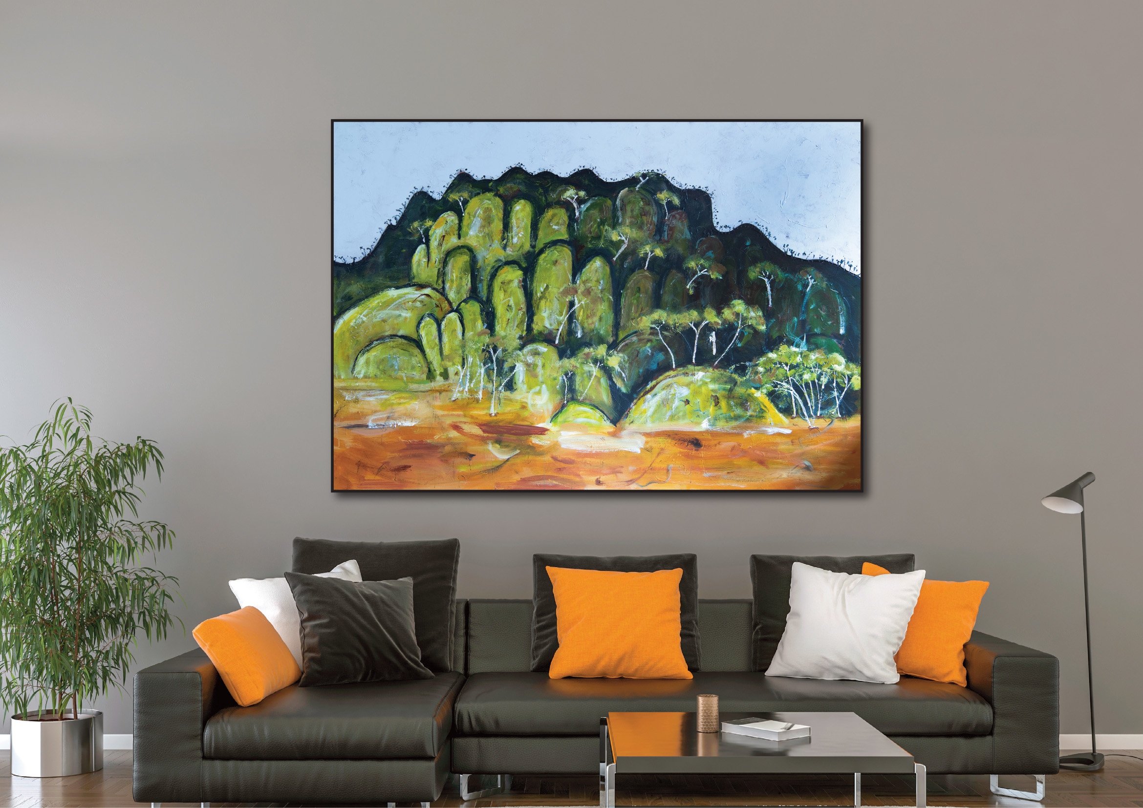 “I’ve been painting this country for many years and never tire of the rolling hills, granite outcrops, rhythms, textures and colours. There’s order and geometry, and mostly wonderful chaotic confusion. It’s a beautiful, rugged, constantly changing landscape that I love using as a backdrop and motif in my paintings.”