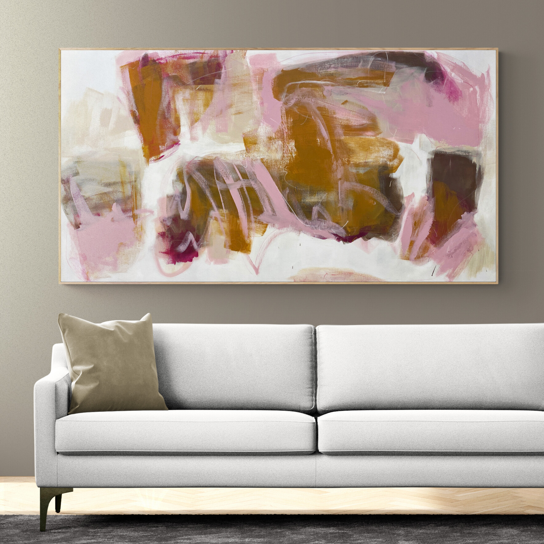 ‘Happier By Your Side’Â has a gorgeous palette of beautiful soft blush and subtle pinks, warm ochre and hints of magenta, mixed with cool beige, white and neutral tones.