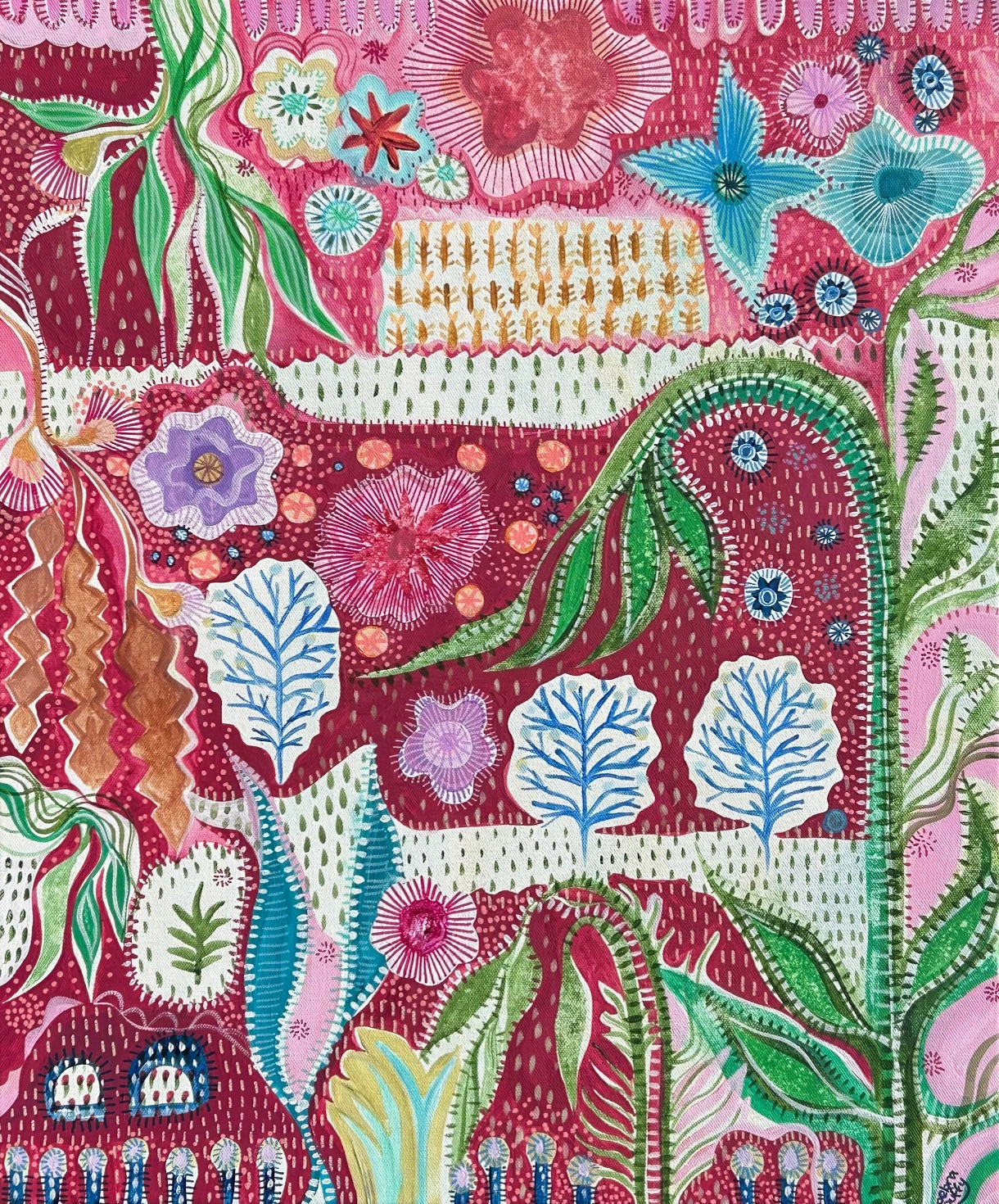 This original joyful artwork was made using acrylic paint and artist markers, and is a creation that comes from being inspired by my surroundings, always finding beauty and charm with all things botanical. A creation bursting with vibrance and joy that gave me a smile while painting this artwork and is one full of little details and small moments to enjoy.