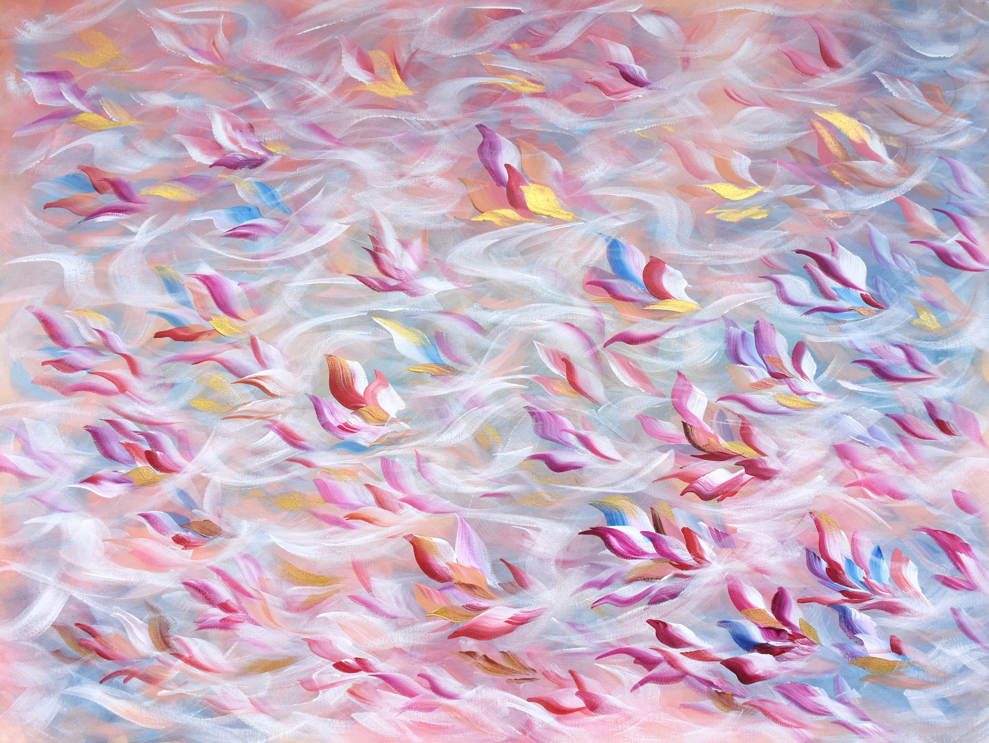 Happy End by Eva Pearl – Acrylic on gallery canvas stretched and ready to hang. Signed on the back. It has a strong wire at the back. Sides of the painting are painted as a continuation in the same colour to match the artwork so there is no need to frame. Signed with a Certificate of Authenticity.