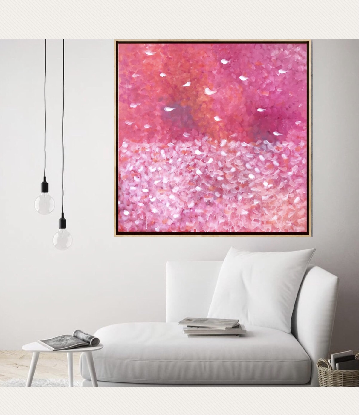 Framed in Vic Ash. 4cm Deep edges of canvas and frame edges are 5.5cm deep.