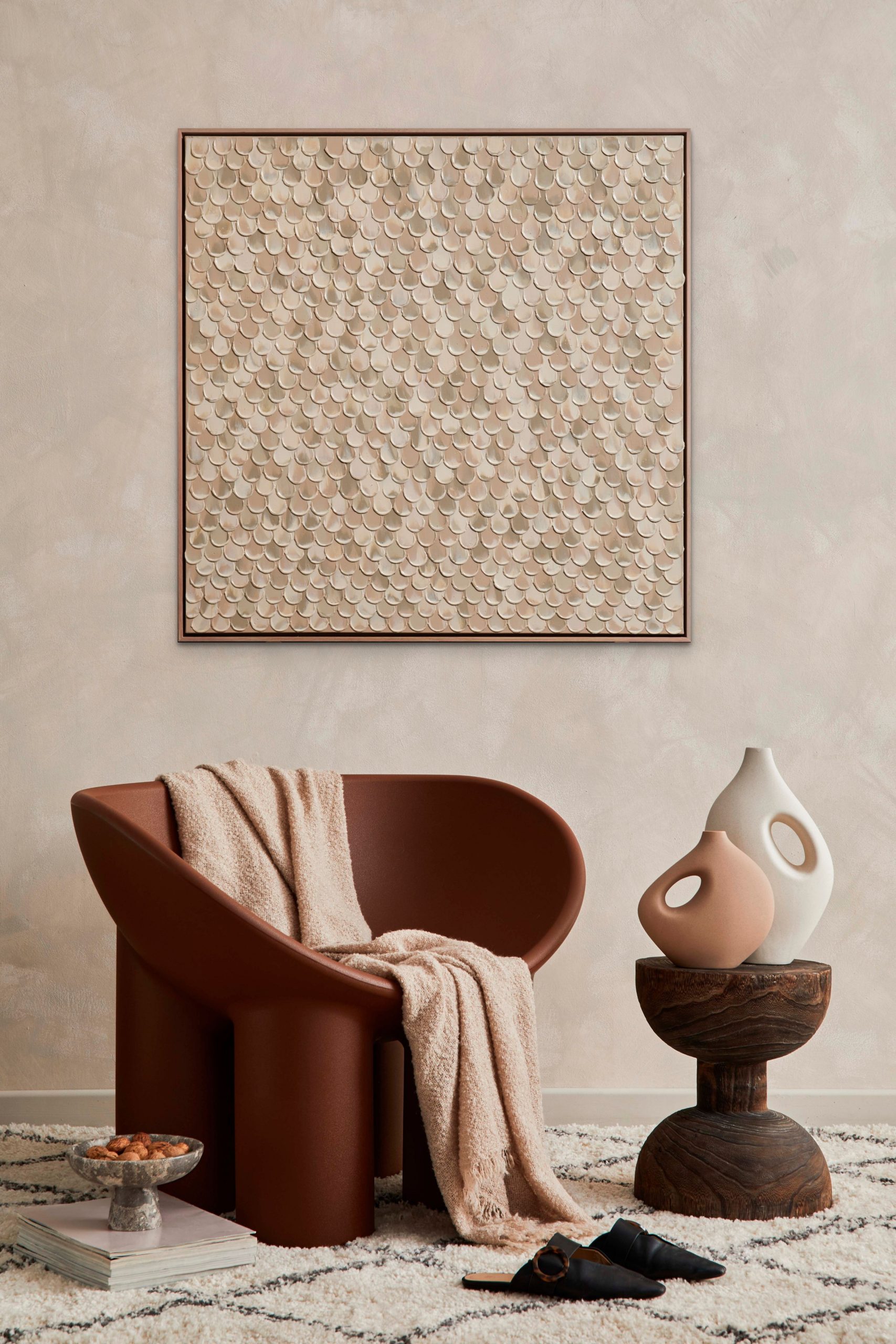 Harmony on Earth by Suzie Firth – is an original artwork which is part of the Shades of Earth Collection and features a stunning combination of earthy tones. Earthy colours create a calming and inviting atmosphere when used in indoor spaces. They are versatile, can work well with a variety of décor styles and can help create a classic, enduring look that won’t go out of style.