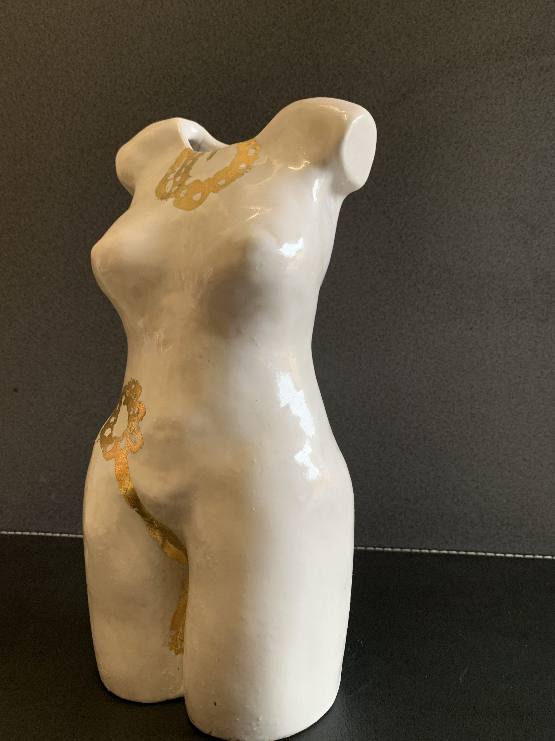Harriet 2 – sculpture by Kim Rees – glazed with gold leaf