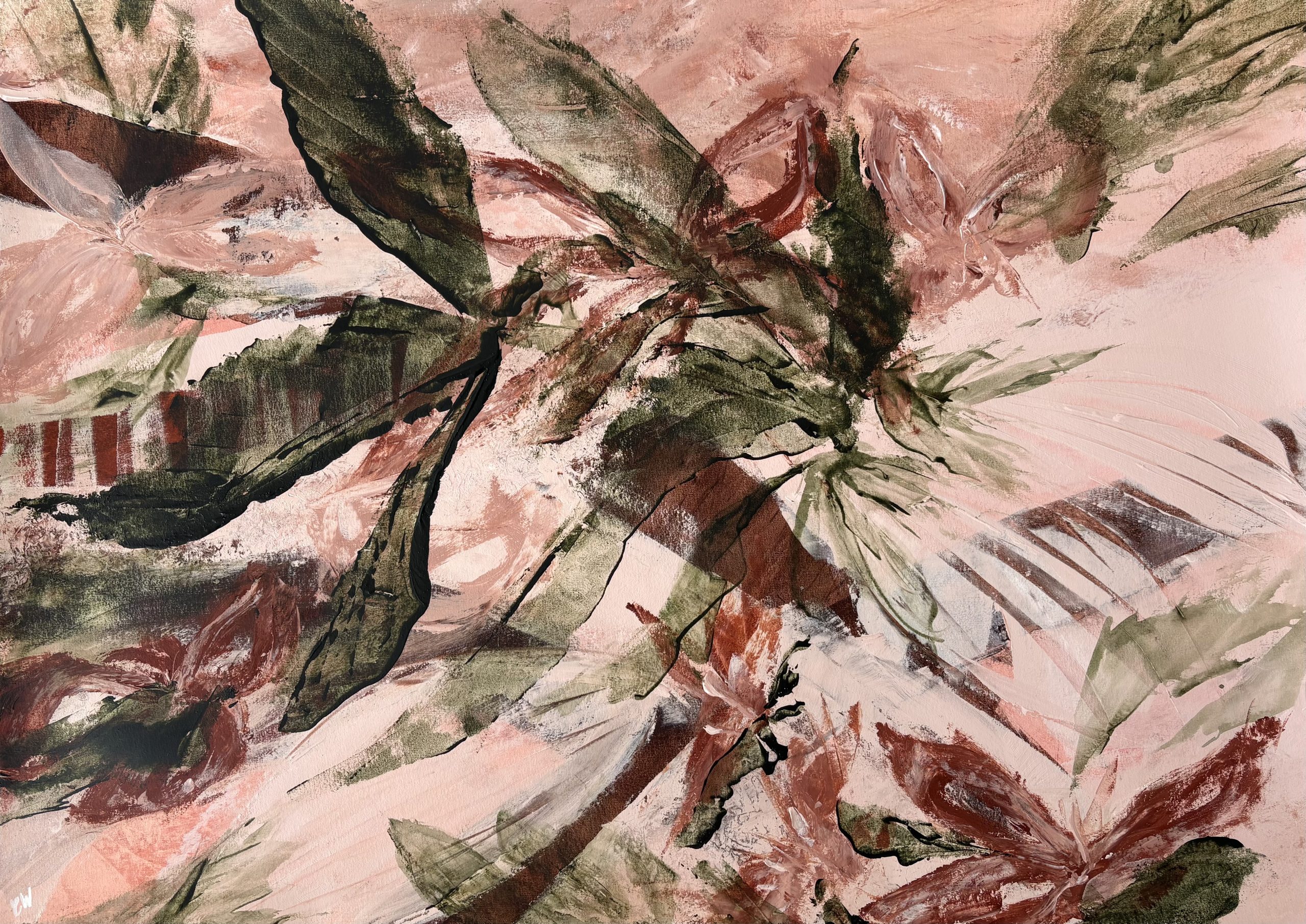 A beautiful abstract botanical painting. 59.4 x 84.1 cm (A1 size). Acrylic on paper. Frame not included. Requires framing.