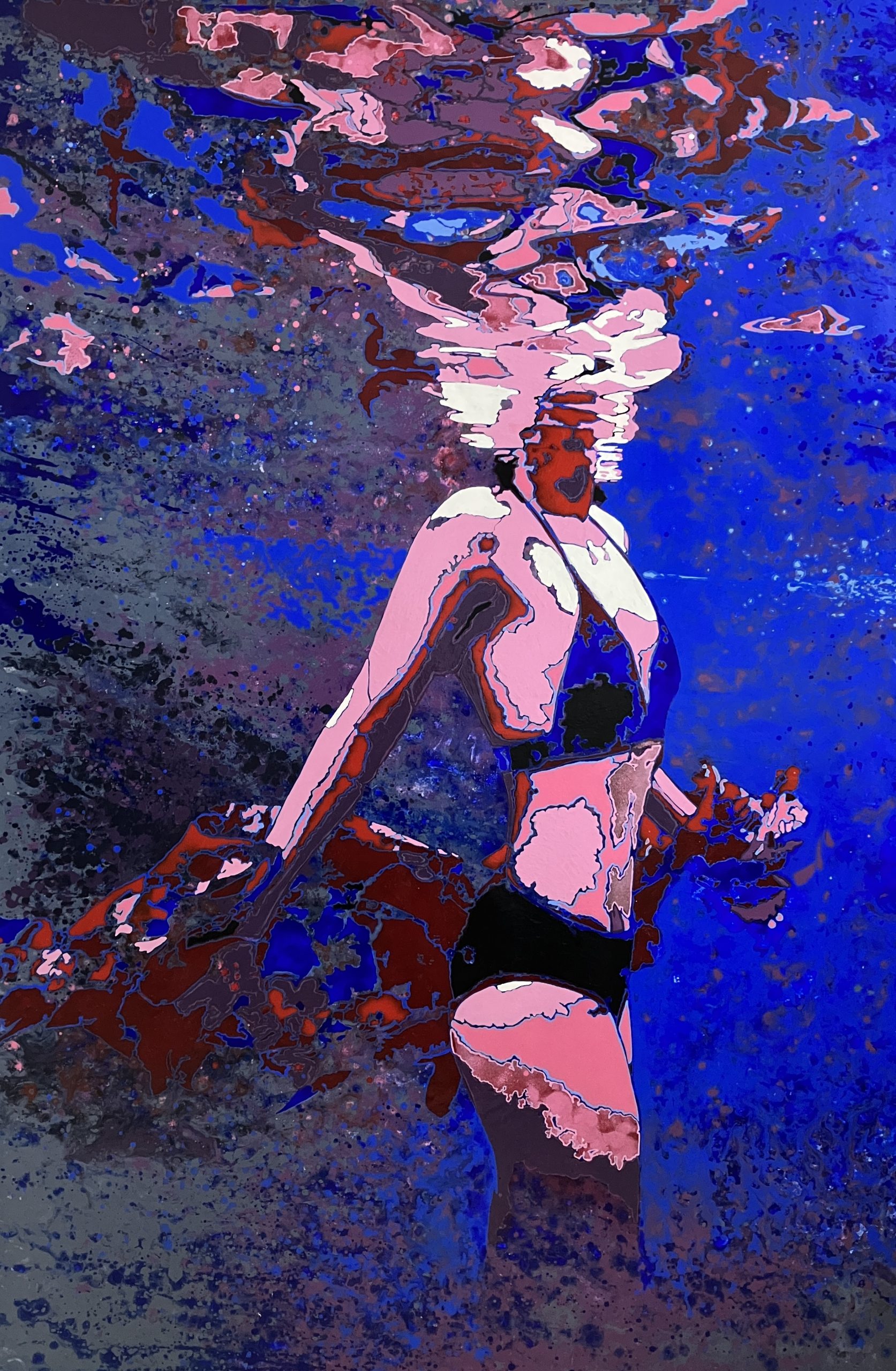 To find her subjects, Kerry seeks images and themes gleaned from a number of popular culture and classical sources. The original image for this painting was taken during a photoshoot in Mataranka, Bitter Springs, in the Northern Territory. Kerry was taken with the beautiful reflections of her bikini clad model just underneath the water. She has named it after a line in the song “California Girls” by The Beach Boys. She is always looking for positive motives to uplift and enrich women’s and girls’ lives – encouraging them to live braver and more fulfilled lives with strong bold poses.