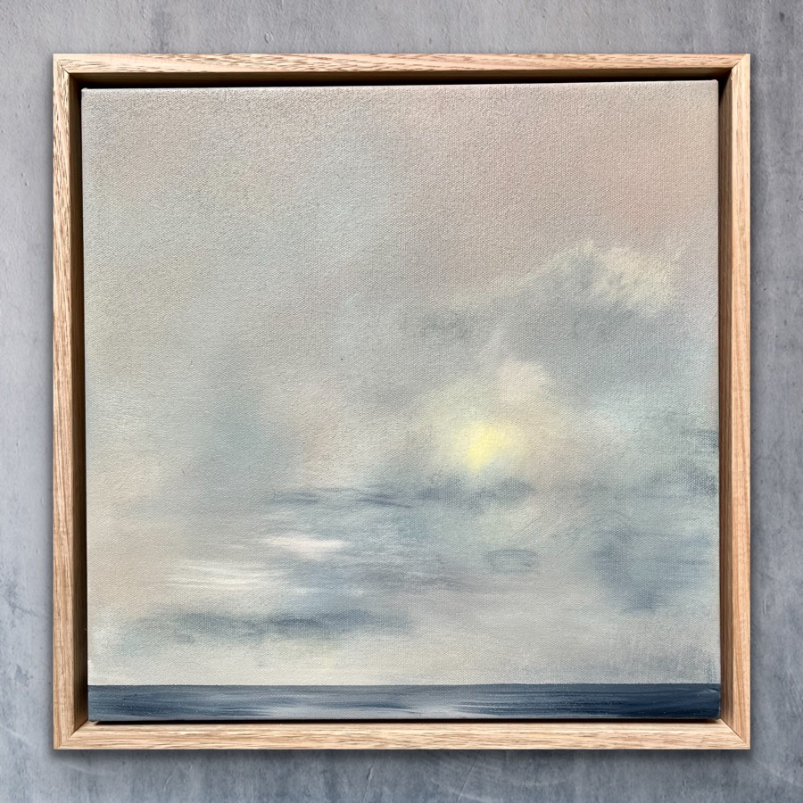 Ready to hang, original oil painting on stretched canvas with oak ash floating frame.