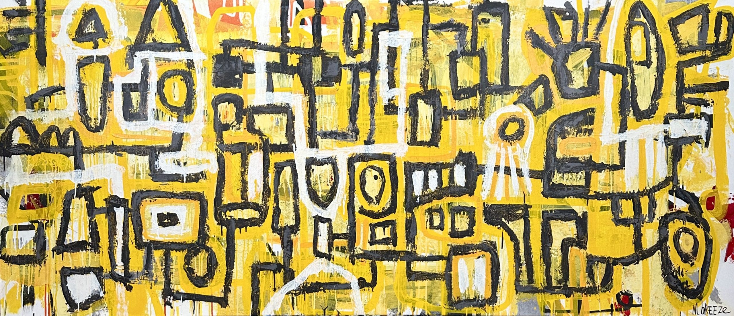 Original artwork using acrylic paints applied with trowel, hands and brush on to stretched canvas