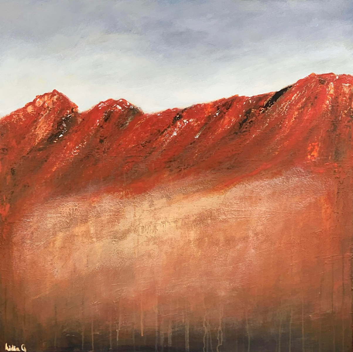 Inspired by the incredible diversity of the Australian landscape from its rugged coastlines, snow-capped mountains and the idiosyncratic landscape of the sandy desert with its sun baked monoliths and rainforests. This painting is heavily textured and the edges are done in Lamp Black and comes with professional wire hanger and a Certificate of Authenticity.