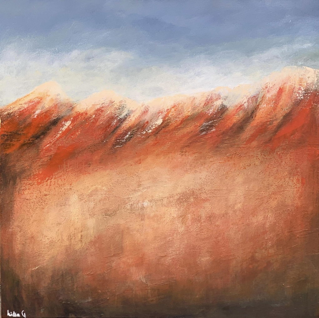 Inspired by the incredible diversity of the Australian landscape from its rugged coastlines, snow-capped mountains and the idiosyncratic landscape of the sandy desert with its sun baked monoliths and rainforests. This painting is heavily textured and the edges are done in Lamp Black and comes with professional wire hanger and a Certificate of Authenticity.