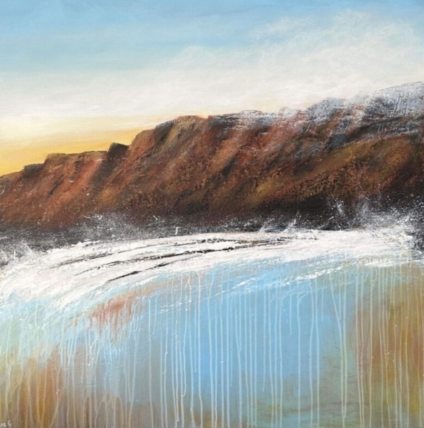 Inspired by the incredible diversity of the Australian landscape from its rugged coastlines, snow-capped mountains and the idiosyncratic landscape of the sandy desert with its sun baked monoliths and rainforests. The edges of the painting are painted in Lamp black and it is heavily textured and varnished for protection. It also comes with professional wire hanger and a Certificate of Authenticity.