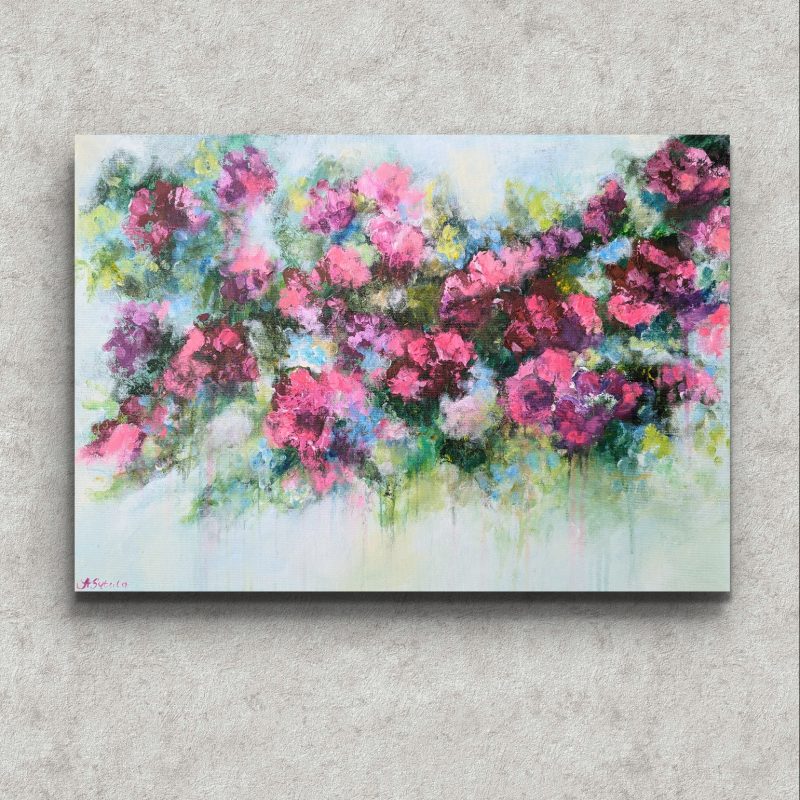 Mixed Media – acrylic gouache screen print and collage on stretched canvas