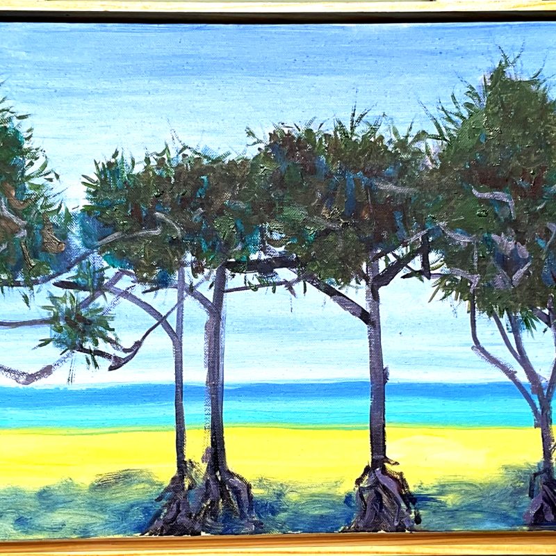 One of my favourite beach locations, this painting is of Lovers’ Point at Yamba. The headland is between two beaches, Convent and Pippi.