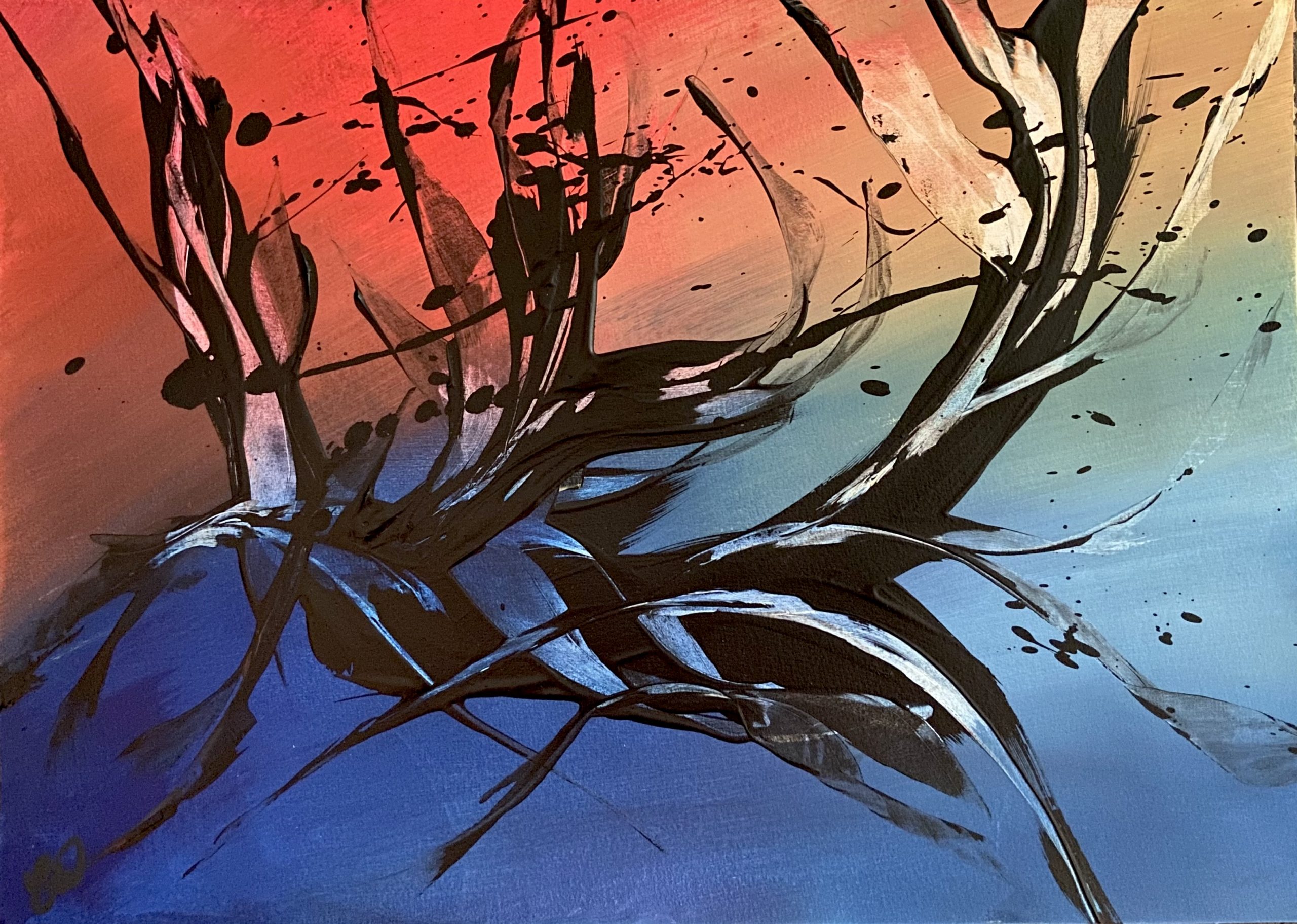 Heat by Carrie Welsh is a beautiful abstract piece with deep colours, representing the warmth in summer. 29.7 x 42 cm (A3 size) Acrylic on paper. Requires framing.