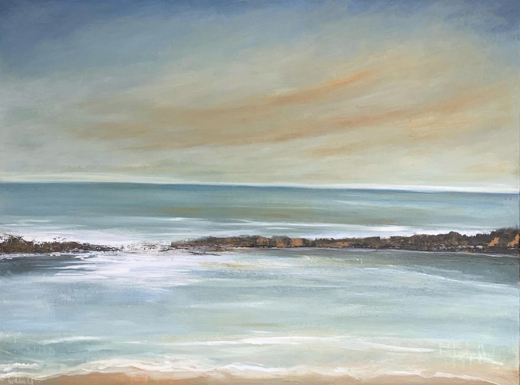 Inspired by the incredible diversity of the Australian landscape from its rugged coastlines, snow-capped mountains and the idiosyncratic landscape of the sandy desert with its sun baked monoliths and rainforests. The edges of the painting are painted in Lamp Black and comes with professional wire hanger and a Certificate of Authenticity.