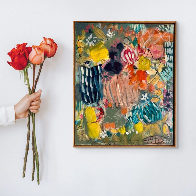 Heavenly Drift by Claire Cummack – is a happy and joyful abstract piece full of gentle, positive energy. It taps into that sense of of flow and abundance represented by a garden overflowing with blooms.
