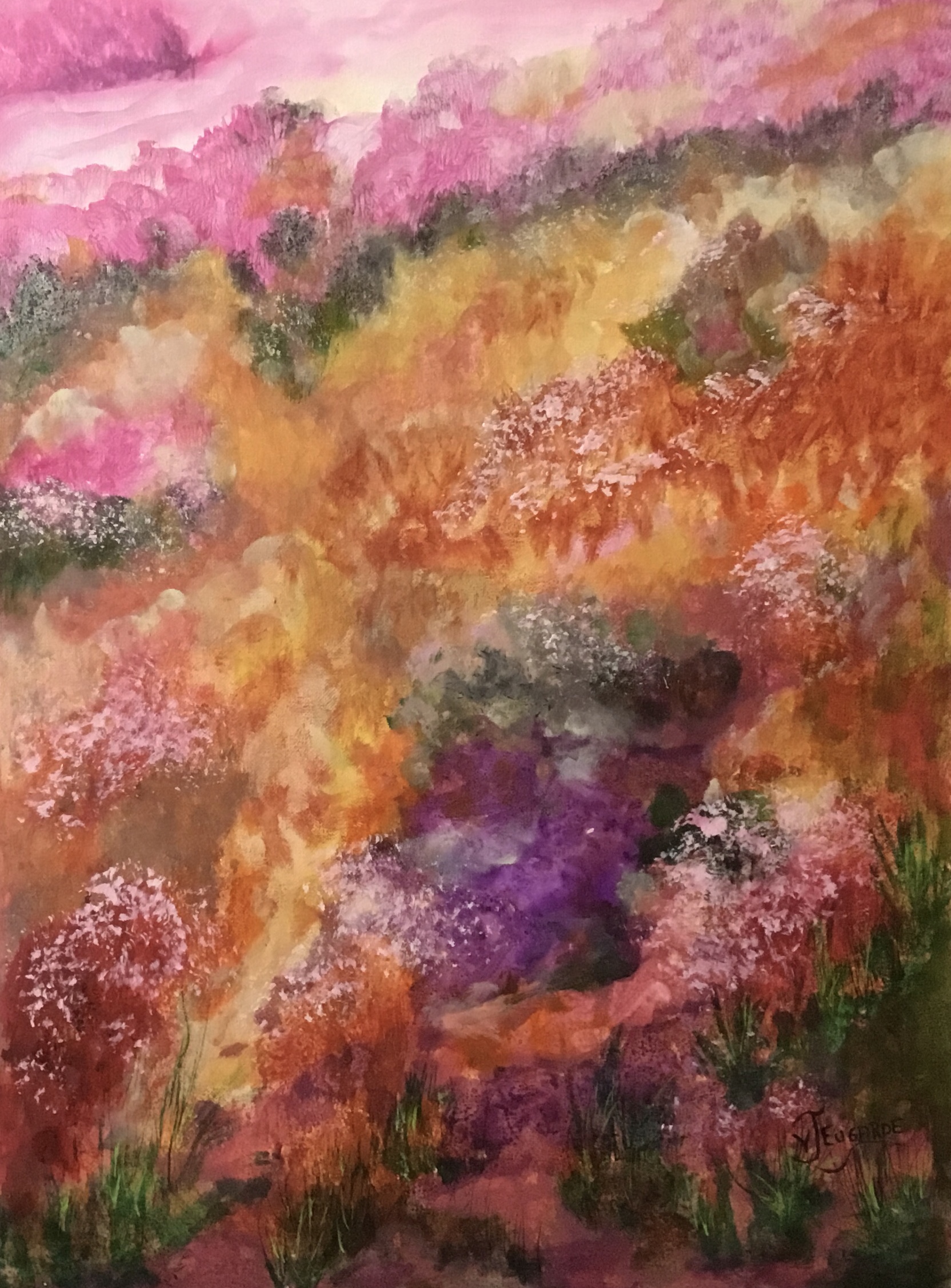 Heavenly Fields is a landscape of a imaginary place, all shades of pinks to soothe the soul and make the day brighter.