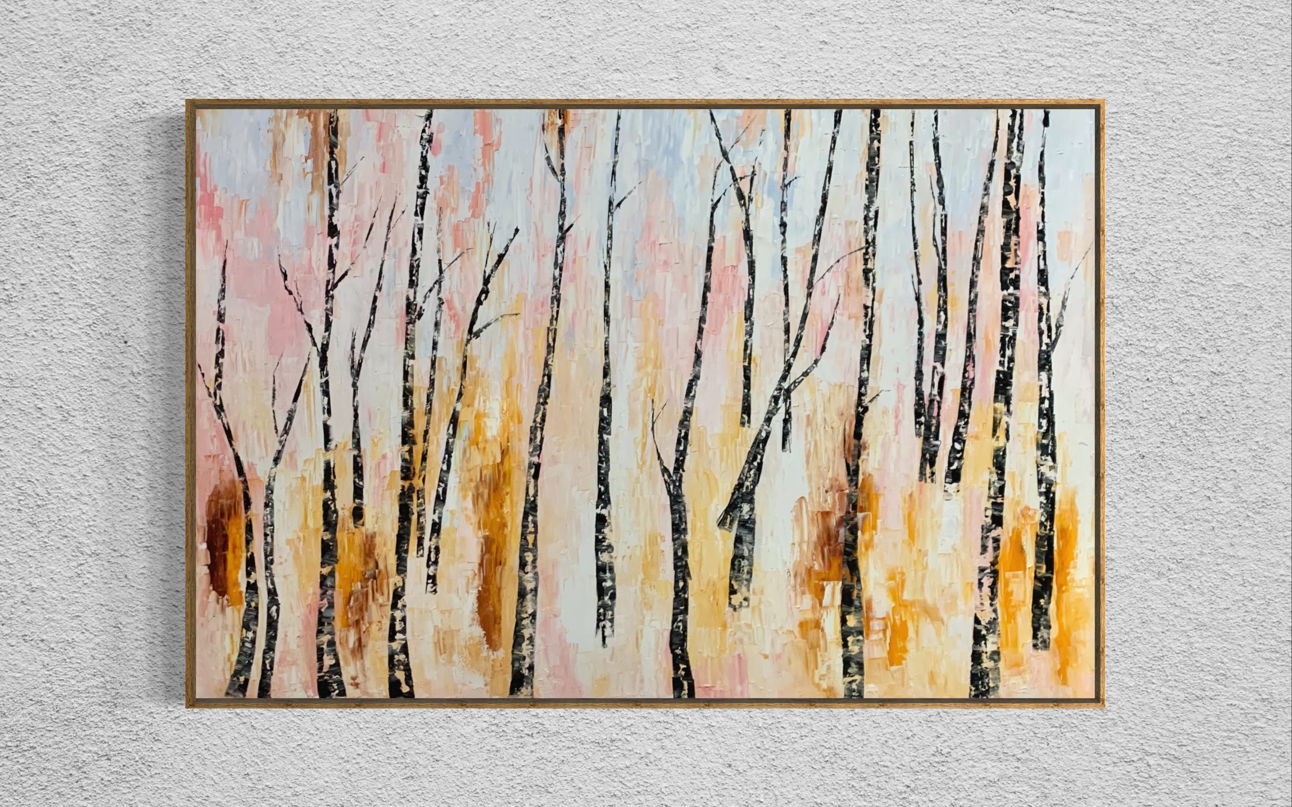 This large textured artwork is inspired by the feeling of the warmth of a family. The colours are a mix of blush pink and blue, bright yellow and mature brown. These Colours represent the members of a family all belonging to different age group, having their own personalities that complement each other perfectly.